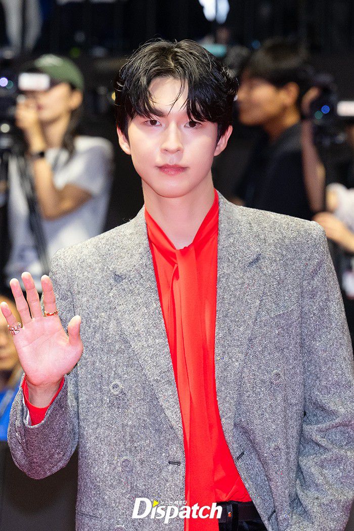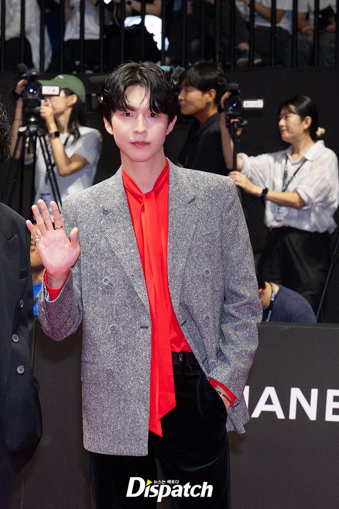 홍경은 레드로 포인트를 준 캐주얼 수트로 댄디한 매력을 뽐냈다. 훈훈한 비주얼이 돋보였다.