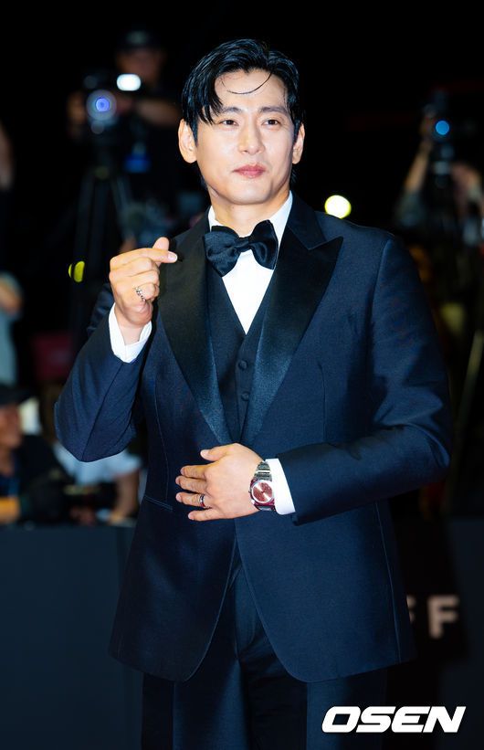 배우 유태오가 레드카펫을 밟으며 포즈를 취하고 있다. 2025.09.17 / rumi@osen.co.kr