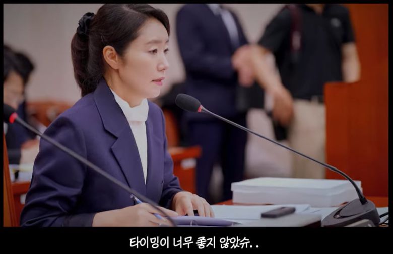 10만 구독자 기념 영상에 지난 7월 14일 청문회 당시 사진과 함께 "타이밍이 너무 좋지 않았슈"라는 자막이 달린 장면이 첨부된 모습. /강선우 유튜브