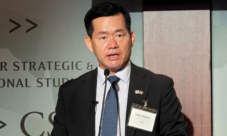 석종건 방위사업청장이 17일(현지시간) 미국 워싱턴DC 전략국제문제연구소(CSIS)에서 열린 한미 방산협력 포럼에서 발언하고 있다. 연합뉴스 |