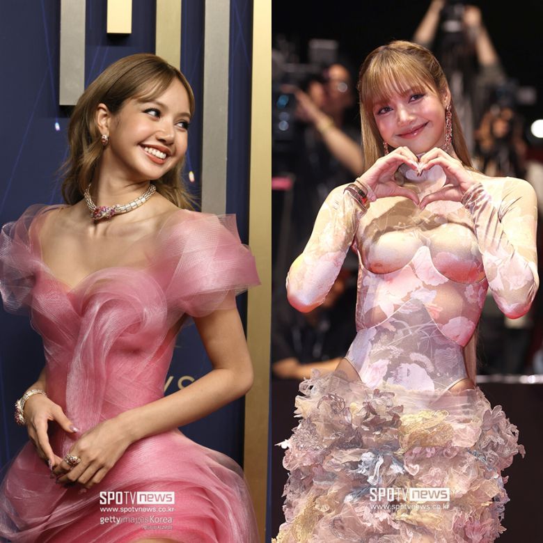 이날 리사는 분홍 꽃잎처럼 반짝이는 반투명 소재의 핑크핏 드레스를 입고 시선을 집중시키며 이날의 베스트 드레서에 등극했다. 한쪽 다리를 드러내는 하이슬릿 디자인의 드레스에 구두부터 쥬얼리, 손톱까지 핑크빛으로 통일해 우아한 여성미를 살렸다. 억대 명품 주얼리도 눈길을 모았다.