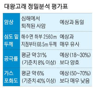 대왕고래의 가스포화도가 공개된 것은 이번이 처음이다. 산업통상자원부는 지난 2월 탐사 종료 직후 "가스 징후는 발견됐으나 경제성이 낮다"고 발표했는데 구체적인 수치를 밝히지는 않았다. 산업부와 석유공사는 탐사시추를 통해 취득된 1700여 개 시료를 지난 2월 미국 지질구조 분석업체 코어랩에 정밀분석해달라고 의뢰했다. 지난 8월 말 정밀분석 결과가 나왔고, 산업부에도 보고가 된 상태다.