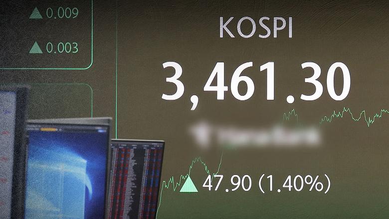 코스피는 결국 47.90포인트, 1.4% 오른 3,461.30으로 정규 거래를 마쳤습니다.