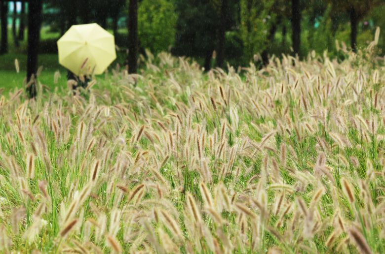 가을을 재촉하는 비가 내린 17일 경기도 수원시 팔달구 서호꽃뫼공원에서 우산을 쓴 시민이 수크령 사이를 걷고 있다. |