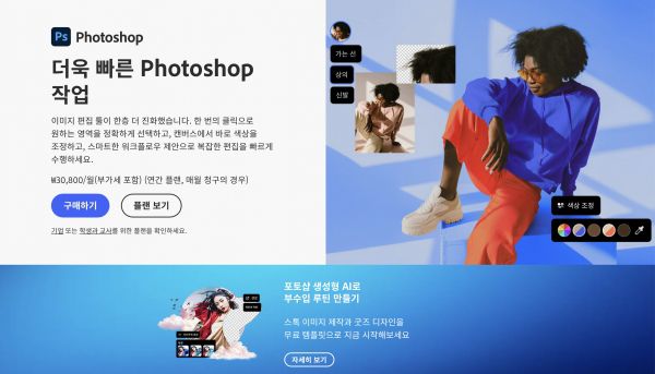 어도비의 대표적인 소프트웨어 '포토샵'(이미지=홈페이지 갈무리) |