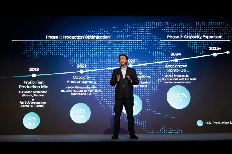 호세 무뇨스 현대차 CEO는 이날 향후 5년 동안 전 세계적으로 77조3000억원을 투자할 계획이라 밝혔는데, 이는 지난해 발표했을 때보다 수치가 7조원 더 늘어난 것이다. 특히 미국 내 투자 규모를 11조6000억원에서 15조3000억원으로 30% 이상 늘려 잡았는데 여기에는 조지아 엘러벨에 있는 ‘현대차 메타플랜트 아메리카(HMGMA)’ 공장 확장 계획도 포함된다. 이번에 이민 당국의 대규모 단속이 이뤄졌던 배터리 공장도 이 부지 한쪽 끝에 자리 잡고 있다. 무뇨스는 “현대차는 2030년까지 미국에서 판매되는 차량의 80% 이상을 현지에서 생산하고자 한다”며 “미 현지화 전략은 관세 등 정치적 이벤트나 단기 정책 변화에 휘둘리는 게 아니라 글로벌 시장에서 성공하기 위한 장기적인 사업 전략의 일환”이라고 했다. 이어 “전문 기술 인력을 위한 단기 출장 문제와 관련해 한미가 상호 이익이 되는 해법을 찾기를 바란다”고 했다.