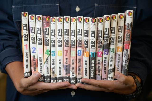 김홍익 안전가옥 대표가 가장 좋아하는 작가 이노우에 다케히코의 농구만화 '리얼'. 하상윤 기자
