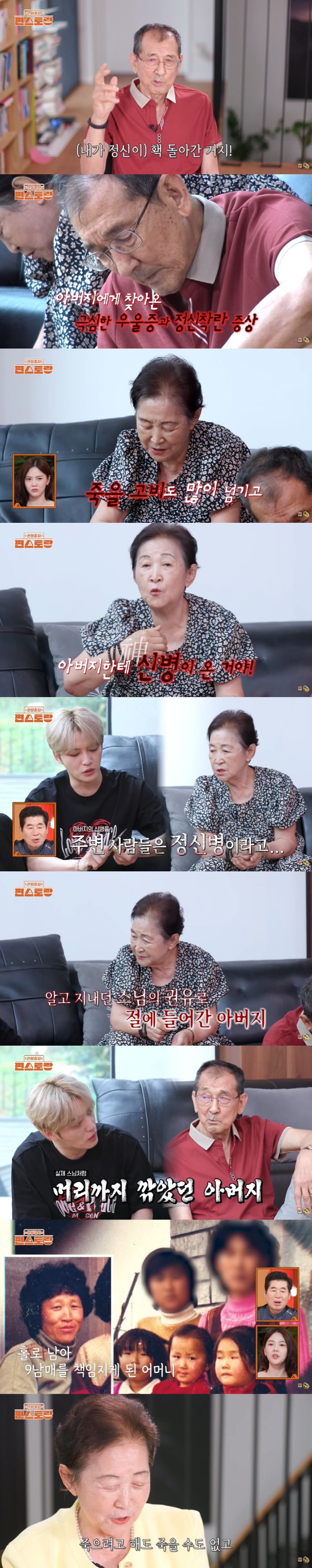 당시 아버지는 큰 충격으로 정신을 놓았고, 극심한 우울증과 정신착란 증상까지 찾아왔다고. 아버지는 "정신이 홱 돌아갔다. 사람들이 나보고 '미쳤다'고 했다. 정신적 큰 충격에 사람들도 알아보지 못했다. 정신이 나가서 정신병자라고 했었다"고 털어놨다.