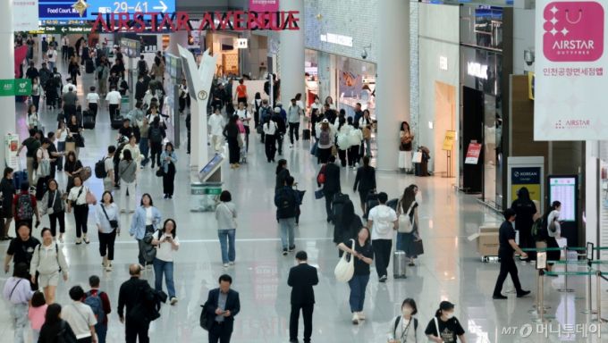 [인천공항=뉴시스] 추상철 기자 = 26일 오후 인천국제공항 내 면세점 구역에서 공항 이용객이 각종 면세점을 지나고 있다. 호텔신라와 신세계면세점은 인천지방법원에 인천국제공항점 임차료 인하 조정 신청을 제기했으며 조정 기일은 내달 2일이다. 025.05.26. scchoo@newsis.com /사진=추상철 |