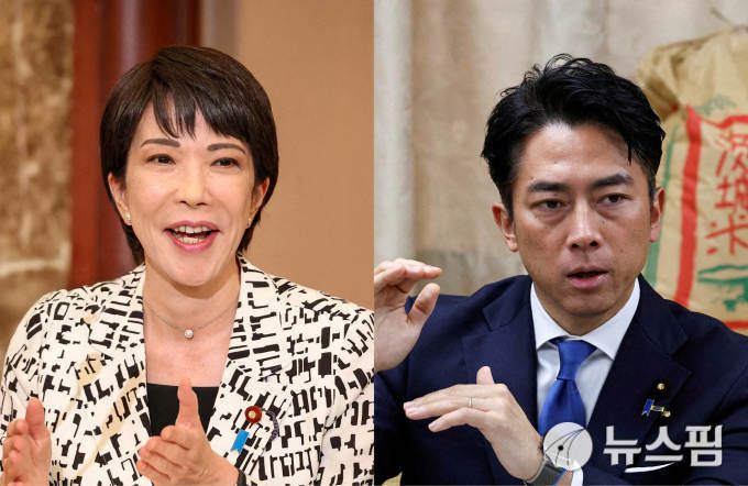 다카이치 사나에 전 경제안보담당상(왼쪽)과 고이즈미 신지로 농림수산상 [사진=로이터 뉴스핌] |