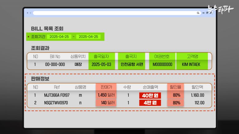 뉴스타파, 세관 신고 자료 입수…200만 원대 면세품, 특정인에게 80% 할인