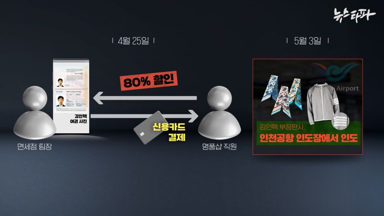이 씨 : 두 분이 같이 오셨는데 저희(면세점) 직원 분들이 오셨거든요. 한 분은 저희가 자주 뵈는 매장의 팀장님이셨거든. 여권을 실물을 가져오지 않으시고 사진을 가져오신 거였고 제가 뭘(여권) 확인을 제대로 못하고 결제한 건 맞습니다.또 이 씨는 “세관 조사 과정에서 여권의 주인인 김인택 씨가 인천공항 인도장에서 직접 찾아간 것으로 확인됐다”면서 “세관 조사를 받으며 당시 결제한 카드가 김인택 씨의 소유가 아니라는 사실도 알게 됐다”고 말했다.