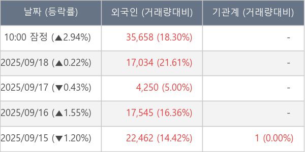 [표] 외국인ㆍ기관 순매매량 (단위 주)