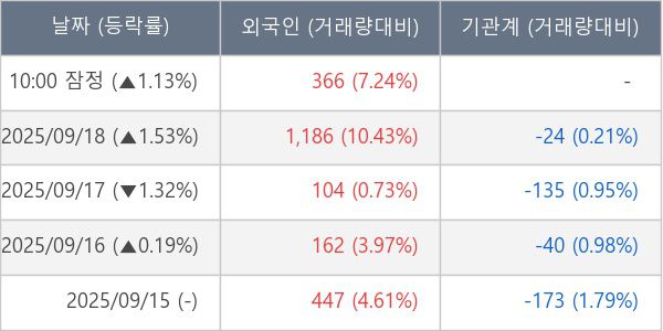 [표] 외국인ㆍ기관 순매매량 (단위 주)