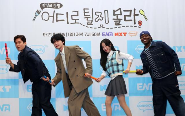 19일 서울 마포구에 위치한 스탠포드 호텔 서울에서는 ENA '어디로 튈지 몰라'(이하 '어튈라') 제작발표회가 열렸다. 행사에는 김대호 안재현 쯔양 조나단이 참석했다. '어튈라'는 짜여진 스케줄이 아닌, 맛집 사장님에서 다른 맛집 사장님의 추천에 따라 행선지가 정해지는 즉흥 맛집 릴레이를 다룬 예능이다. '토요일은 밥이 좋아' 'THE 맛있는 녀석들' 등 먹방 예능을 선보였던 이영식 PD의 신작이다.