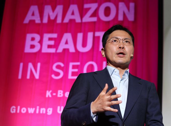 19일 서울 강남구 코엑스에서 열린 ‘아마존 뷰티 인 서울’ 행사에서 윤상현 한국콜마 부회장이 ‘K뷰티 화장품 브랜드의 성공’을 주제로 강연하고 있다. 연합뉴스 |