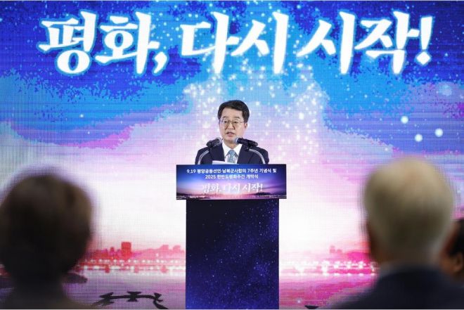 김 지사는 19일 파주 캠프그리브스에서 열린 ‘9.19 평양공동선언 7주년 기념식’에 참석해 “김대중 정부가 재탄생의 계획을 세우고, 노무현 정부가 터를 닦은 이곳 캠프그리브스에서 이재명 국민주권 정부로 평화의 바통이 건네졌다”면서 “이재명 국민주권 정부가 열어갈 한반도 평화 번영의 길을 경기도가 가장 굳건히 뒷받침하겠다”고 밝혔다.