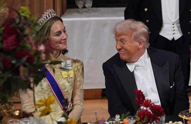 이번 만찬에서 트럼프 대통령은 테이블 중앙에서 국왕과 케이트 미들턴 왕세자빈 사이에 앉았다. 만찬 중 포착된 사진 속에서 트럼프 대통령은 왕세자빈을 향해 환한 미소를 지었고, 왕세자빈도 은은한 미소로 응답했다.