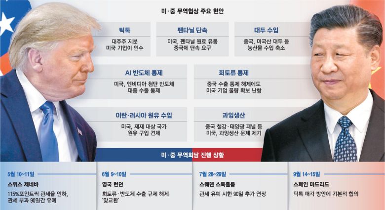 하지만 지난 15일 트럼프 대통령은 SNS에 다시 '극적 반전'을 알렸다. 그는 스페인 마드리드에서 열린 미·중 고위급 무역회담에서 틱톡 매각 합의 소식을 전하면서 "시 주석과 금요일(19일)에 대화할 것"이라며 미·중 관계가 "매우 강력하다"고 밝혔다.