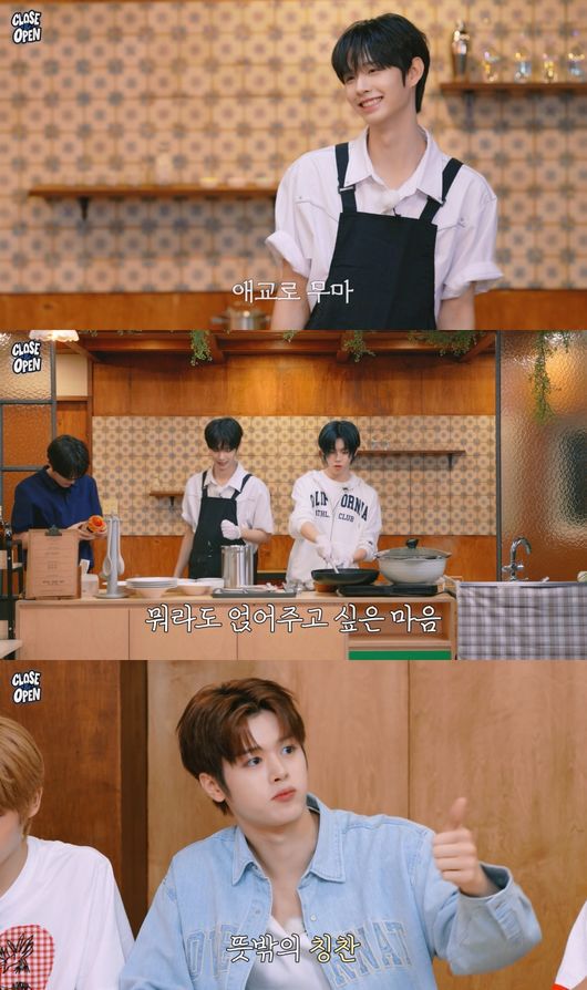 이번 영상에서는 셰프로 깜짝 변신해 일일 식당을 오픈한 김성민의 모습이 그려진다. 식당을 찾은 멤버들은 "먹고 싶은 메뉴를 정해 달라"라는 김성민의 말에 한식부터 양식까지 다양한 요리를 요청하고, 곧이어 김성민의 자신감 넘치는 즉석 요리가 펼쳐진다.