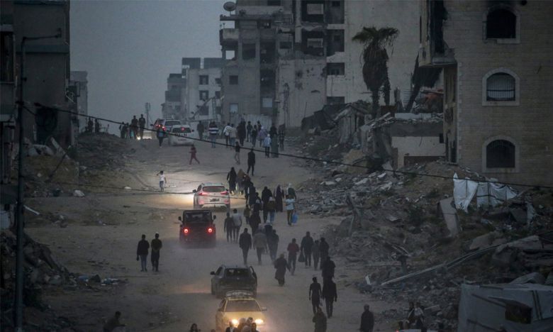 가자시티 폐허 걷는 팔레스타인 주민. EPA연합뉴스 |