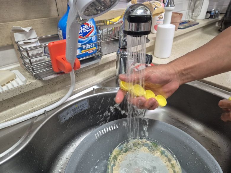 강원 강릉지역 저수조 용량 100톤 이상 아파트 113곳에 대한 시간제 제한급수가 풀린 19일 저녁 강릉 회산동의 한 아파트 주민이 수돗물을 이용해 설거지를 하고 있다. 2025.9.19 (강릉=뉴스1) |