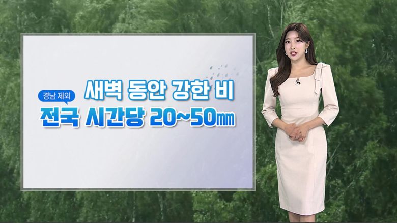 새벽부터 오전까지 경남을 제외한 전국에 시간당 20~30mm, 특히 충남과 전북에는 최대 50mm까지 강한 비가 집중되겠습니다.
