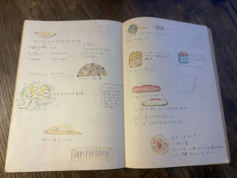 셰프 아버지 나카가와 다모쓰가 현역에서 은퇴하며 딸 히데코에게 남긴 요리 노트. 섬세한 그림과 상세한 레시피가 담겼다. |
