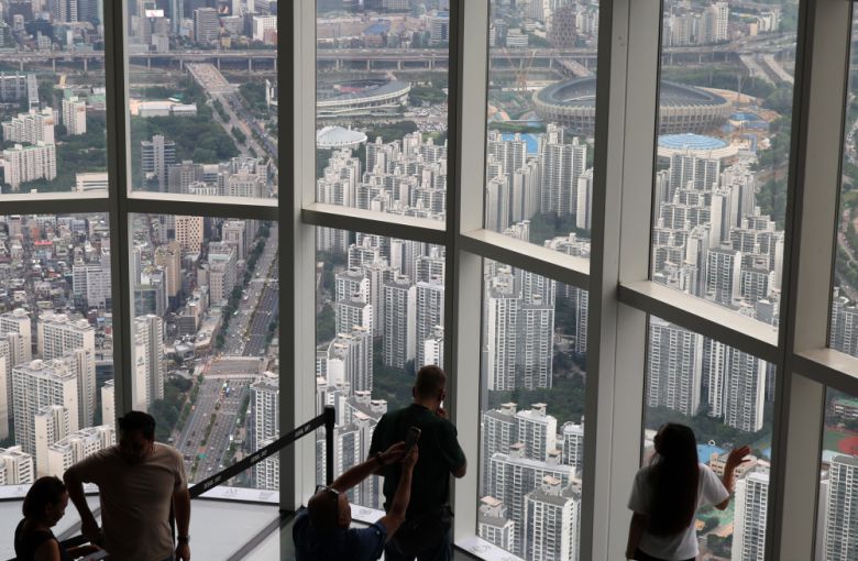 롯데월드타워에서 내려다 본 서울 아파트 전경. |