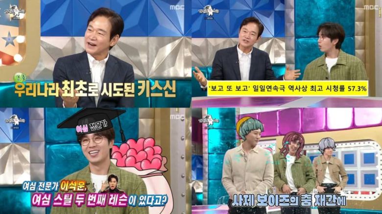 정보석은 "라스가 인생을 바꿨다"며 재출연 이유부터 '대박 행보'를 공개했다. 이전 출연 이후 운영 중이던 빵집이 히트를 치며 마곡동으로 확장 이전했고, "빵집은 아들이 하고 나는 화장실 청소와 접객을 돕는다. 모델 계약도 러닝 개런티로 정식 체결했다"고 솔직하게 전했다. 드라마 황금기 비하인드도 소환됐다. '폭풍의 계절' '아들의 여자' 등 전성기를 회상하며 채시라와의 격정 멜로, 김혜수와의 "국내 최초 수중 키스" 촬영기를 공개해 스튜디오를 술렁이게 했다. IMF 시절 전 재산을 들여 리모델링한 볼링장 때문에 드라마를 고사했지만, 임성한 작가의 "작품에 볼링 장면을 넣겠다"는 제안으로 합류해 '보고 또 보고'가 연일 50%대 시청률을 기록, 볼링장까지 '쌍끌이 흥행'에 성공했다는 '원조 PPL' 같은 일화도 웃음을 줬다. 최근엔 피부 관심사를 살려 화장품 사업을 준비 중이라고 근황을 전했다.