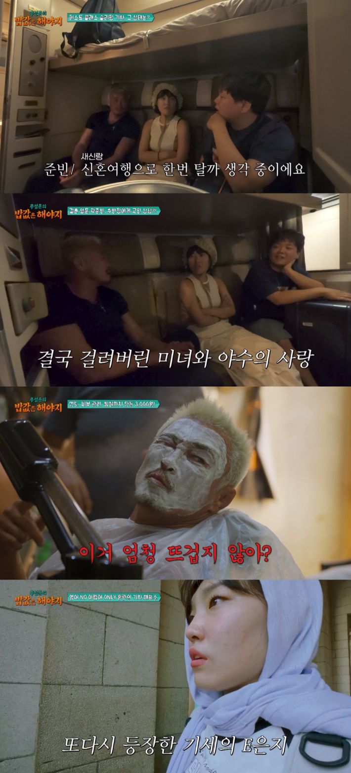 이날 낭만이 있는 침대칸 열차에 대해 이야기하던 중 곽준빈은 여자친구가 자신의 유튜브를 보고 타보고 싶어 했다며 "신혼여행으로 한 번 탈까 생각 중이다"라고 말한다. 이어 자연스럽게 추성훈과 이은지에게 신혼여행지를 공개한다고 해 여행 크리에이터로서 수많은 나라를 다녀본 곽준빈이 선택한 곳은 어디일지 관심이 쏠리고 있다.