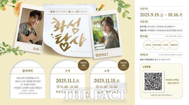 [더팩트ㅣ화성=조수현 기자] 경기 화성시는 다음 달 16일까지 직장인 미혼남녀 만남 행사인 '화성탐사(화성시가 이어주는 탐나는 사람 만나기)' 3·4기 참가자를 모집한다고 20일 밝혔다