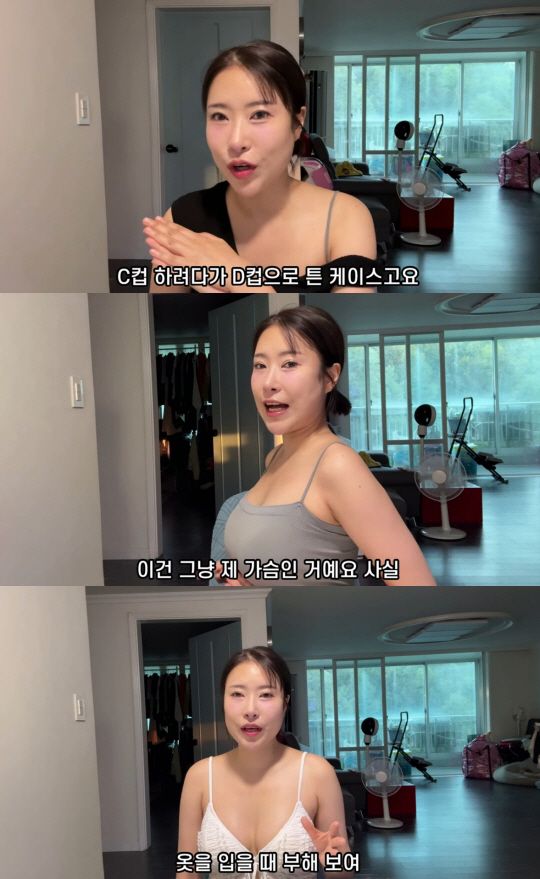 장점에 대해서는 "나시 입었을 때 너무 만족스럽다. 나시만 입어도 태가 난다. 가장 큰 장점이 아닌가 생각한다"며 "허리도 얇아 보인다. 수술 전에도 원래 마른 편이긴 하지만 확실히 가슴이 살아나니까 더 잘록해 보인다. 하체는 자신 있지만 상체는 그 정도는 아니었는데 더 호리병 같고 더 늘씬해 보이는 장점이 생긴다"고 설명했다.