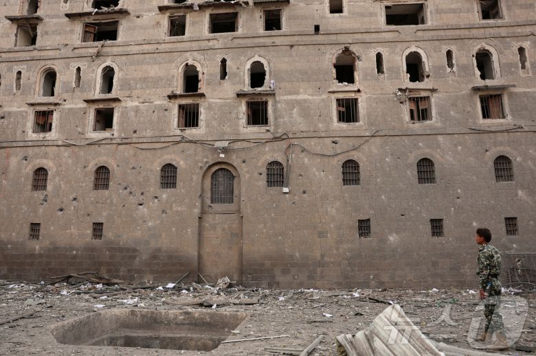지난 11일(현지시간) 이스라엘의 공습 이후 피해를 입은 예멘 국립박물관 건물 밖에 한 경찰관이 서 있다.2025.09.11. ⓒ 로이터=뉴스1 ⓒ News1 권영미 기자 |