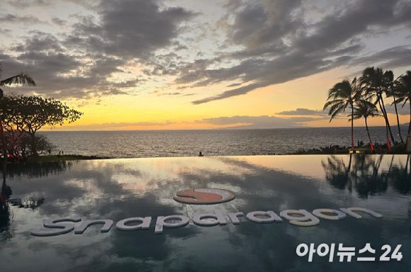 지난해 미국 하와이 마우이 와일레아 비치 리조트 메리어트에서 스냅드래곤 서밋 2024가 개최된 가운데 리조트 내 전시된 스냅드래곤 로고 이미지. [사진=안세준 기자] |