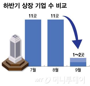 신규 상장 기업 8월 11곳 → 9월 1곳 '뚝'