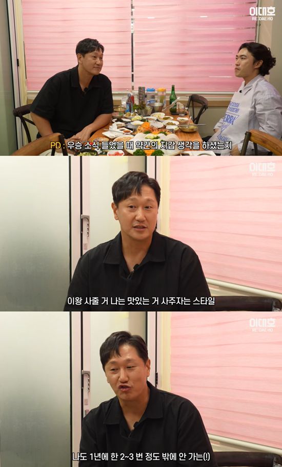 PD는 그에 "우승 소식 들었을 때 약간의 지갑 생각을 하셨냐"며 질문을 건넸고, 이대호는 "아니, 나는 진짜 우승만 해라. 진짜 이번엔 맛있는 거 사 줄 거다. 나도 1년에 2~3번밖에 안 가는 곳에 가서 맛있는 걸 사 주고 싶다"며 보는 이들을 감동하게 만들었다.