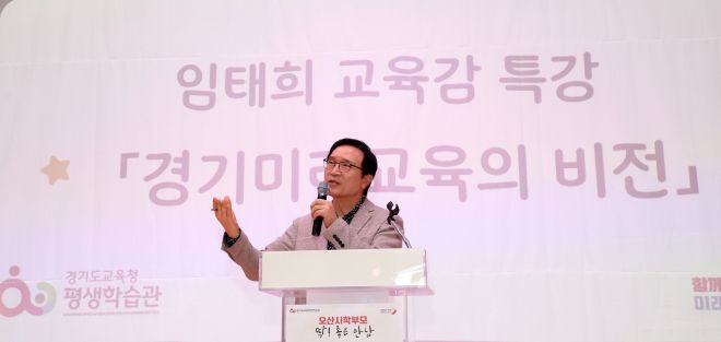 프로그램은 오산시와 협업해 진행하는 공감 교류 프로그램의 하나로, 임태희 교육감의 경기 교육정책 특강과 변호사와 알아보는 학교폭력 예방 및 대처법 강의 등이 진행됐다.