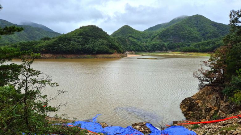 불과 4∼5일 전에는 저수지의 마른 바닥과 수풀까지 보였지만, 지금은 완전히 수몰됐습니다.