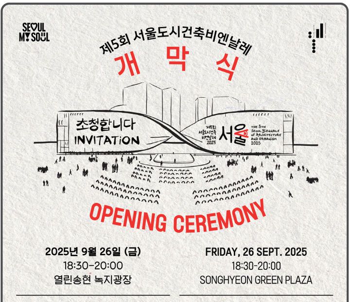 개막식은 26일 오후 6시30분 열린송현 녹지광장에서 개최된다. 오세훈 서울시장과 토마스 헤더윅 총감독을 비롯한 국내외 건축가, 각국 주한 외교 사절, 시민이 참석할 예정이다.