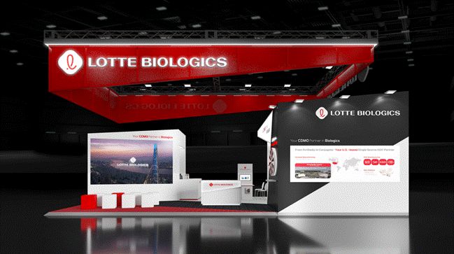 독일 프랑크푸르트에서 열리는 세계 의약품 전시회 'CPHI 월드와이드' 내 롯데바이오로직스 단독 전시 부스(사진=롯데바이오로직스) |