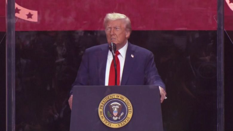 7만여 명이 가득 채운 미 애리조나주 글렌데일 프로풋볼 스타디움에 트럼프 대통령이 등장했습니다.