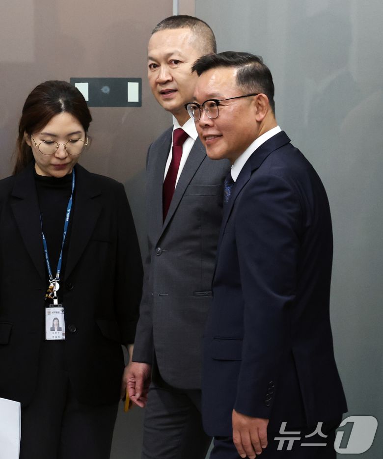 (서울=뉴스1) 오대일 기자 = 오승진 서울경찰청 광역수사단장(오른쪽)과 탓차이 피타닐라붓 태국 경찰국 스캠 TF 단장이 22일 오후 서울 마포구 서울경찰청 광역수사단에서 열린 태국 파타야 사기조직 검거 한·태 합동브리핑에서 나란히 입장하고 있다. 서울경찰청 광역수사단 금융범죄수사대는 이 자리에서 태국 경찰과의 공조를 통해 태국 파타야에서 활동하던 사기조직원 25명을 검거했다고 밝혔다. 검거된 사기조직원들은 태국에서 '룽거컴퍼니'라는 범죄단체를 조직해 지난해 7월부터 1년 동안 로맨스스캠팀과 코인사기팀, 노쇼사기팀, 기관사칭사기팀 등을 구성해 피해자들로부터 금액을 편취한 혐의를 받는다. 피해자는 878명, 피해금액만 약 210억 원에 달한다. 2025.9.22/뉴스1