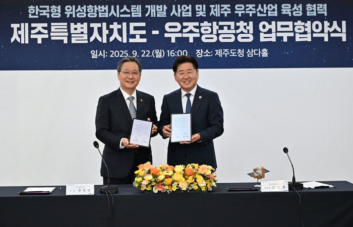 우주항공청은 22일 제주도와 한국형 위성항법시스템(KPS) 개발 사업과 연계한 우주산업 육성 및 협력사업 추진을 위한 업무협약을 체결했다.