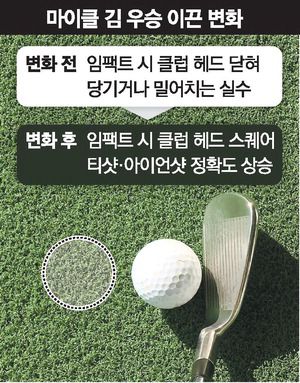 마이클 김이 완전히 다른 선수가 될 수 있도록 도운 조력자는 숀 폴리 스윙코치다. 2021년 겨울부터 지금까지 지도하고 있는 폴리 코치는 마이클 김이 임팩트 순간 클럽 헤드가 스퀘어를 이루지 않는 것을 발견했다.