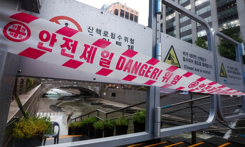 서울 곳곳에 호우주의보가 내린 지난 8월 13일 서울 중구 청계천 산책로 출입이 통제되고 있다. 연합뉴스 |