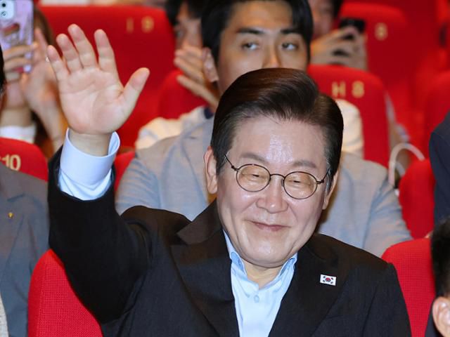 이재명 대통령이 20일 부산 해운대구 영화의전당에서 부산국제영화제 공식상영작 '극장의 시간들' 관람에 앞서 관객들에게 인사하고 있다. 부산=뉴시스 |