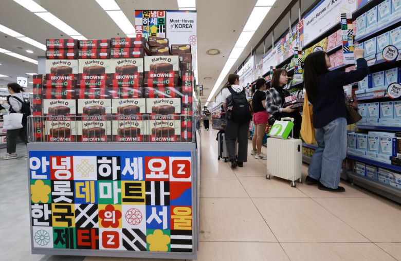 ‘K푸드’ 수출, 사상 최대 가시화 22일 서울 중구 롯데마트 서울역점에서 외국인 관광객들이 스낵과 쿠키, 브라우니 등 K푸드 상품을 고르고 있다. 농림축산식품부에 따르면 올 8월까지 농식품 누적 수출은 지난해보다 5.1% 늘어난 67억1500만달러로 사상 최대를 기록했다. 연합뉴스