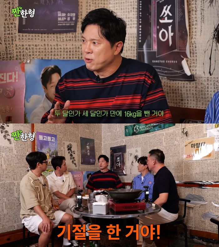 이날 정성화는 “‘영웅’ 때 영화 준비하느라고 2~3달 만에 16kg을 뺐다. 그러다 보니까 저혈압 같은 게 왔다”고 회상했다.