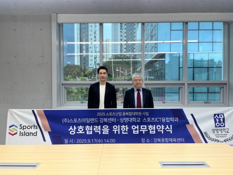 상명대학교(총장 홍성태) 스포츠ICT융합학과는 17일 강북종합체육센터에서 (주)스포츠아일랜드 강북센터(센터장)와 업무 협약(MOU)을 체결했다고 22일 밝혔다.